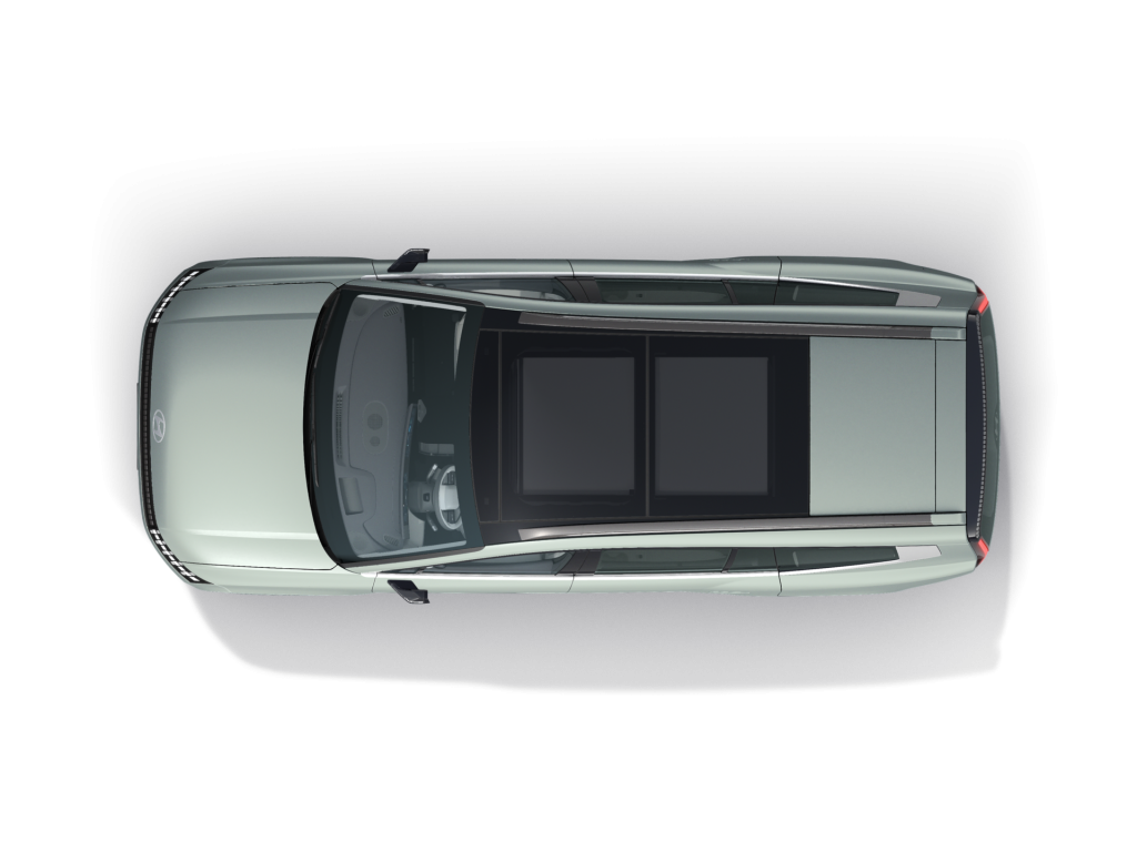- Panoramatické střešní okno: Dvoudílné elektricky ovládané panoramatické střešní okno s elektricky ovládanou sluneční clonou.